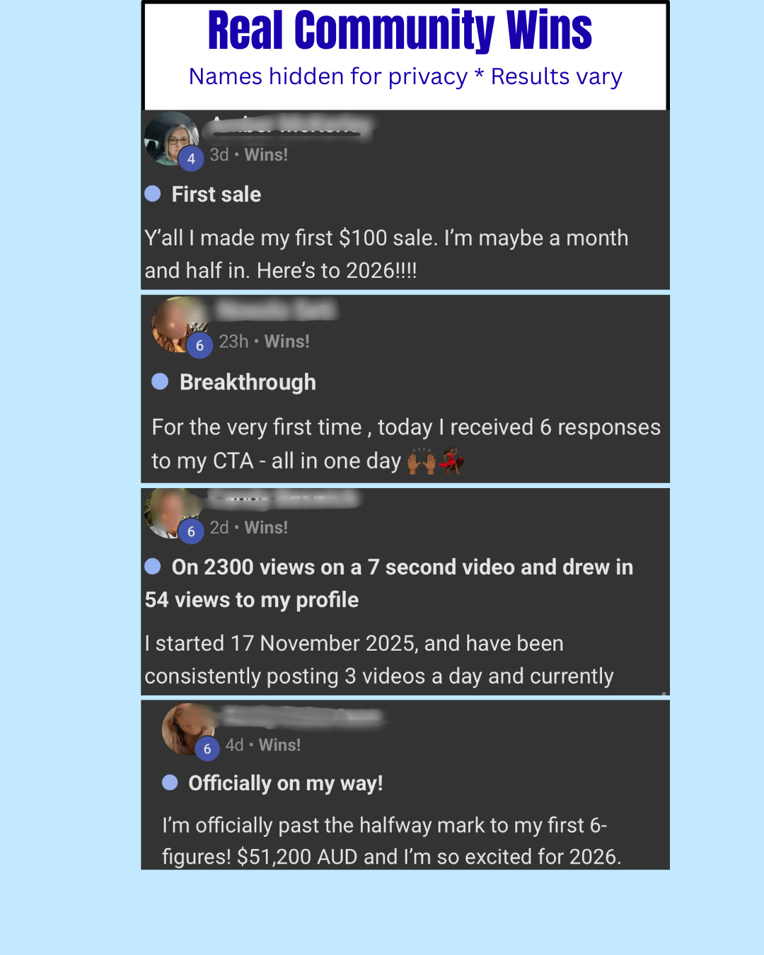 Earnings and income representations made by this website, its programs, and any associated products or services are aspirational statements only regarding potential earnings. Success stories and testimonials shared are exceptional, non-typical results and are not intended to guarantee that you or others will achieve the same outcomes. Individual results will vary and depend entirely on your individual capacity, work ethic, business skills, experience, level of motivation, diligence in applying the strategies, the economy, normal and unforeseen risks of doing business, and other factors.